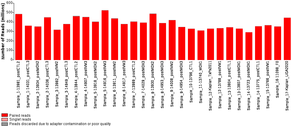 trimmed read lengths for the forward (R1), reverse (R2) and singlet (R0) reads. Note that it is common
